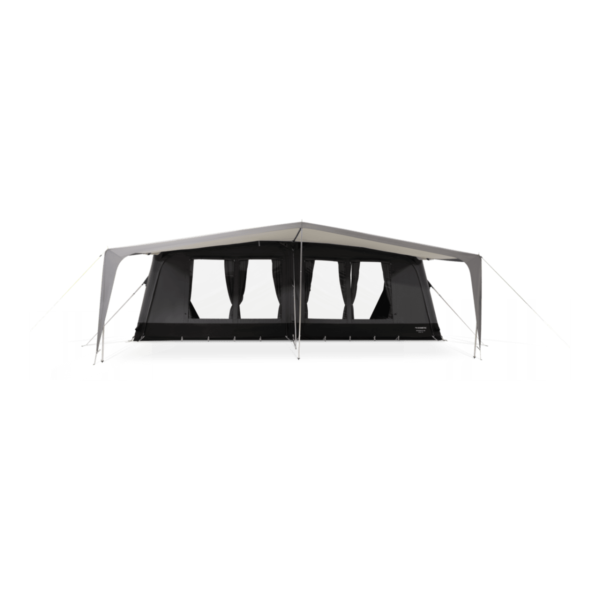 Ge ditt Dometic Residence AIR-förtält ett extra skyddande utrymme med detta frontmonterade canopy. Frontskärmen fästs enkelt direkt på Residence-förtältets framsida med en kraftig dragkedja, vilket gör monteringen snabb och smidig. Den medföljande uppsättningen stolpar ger stabilitet och struktur, samtidigt som det skapas en praktisk överbyggnad som skyddar mot sol, regn och vind.
