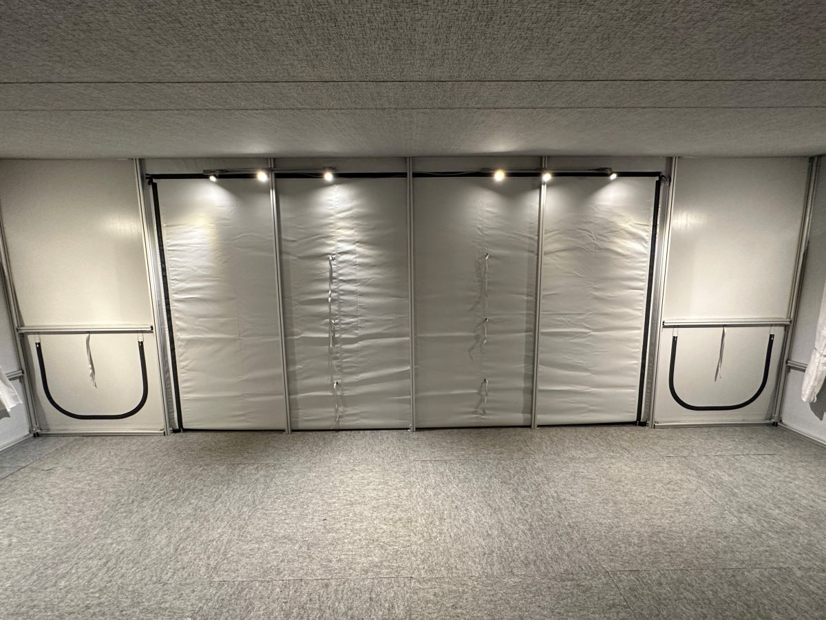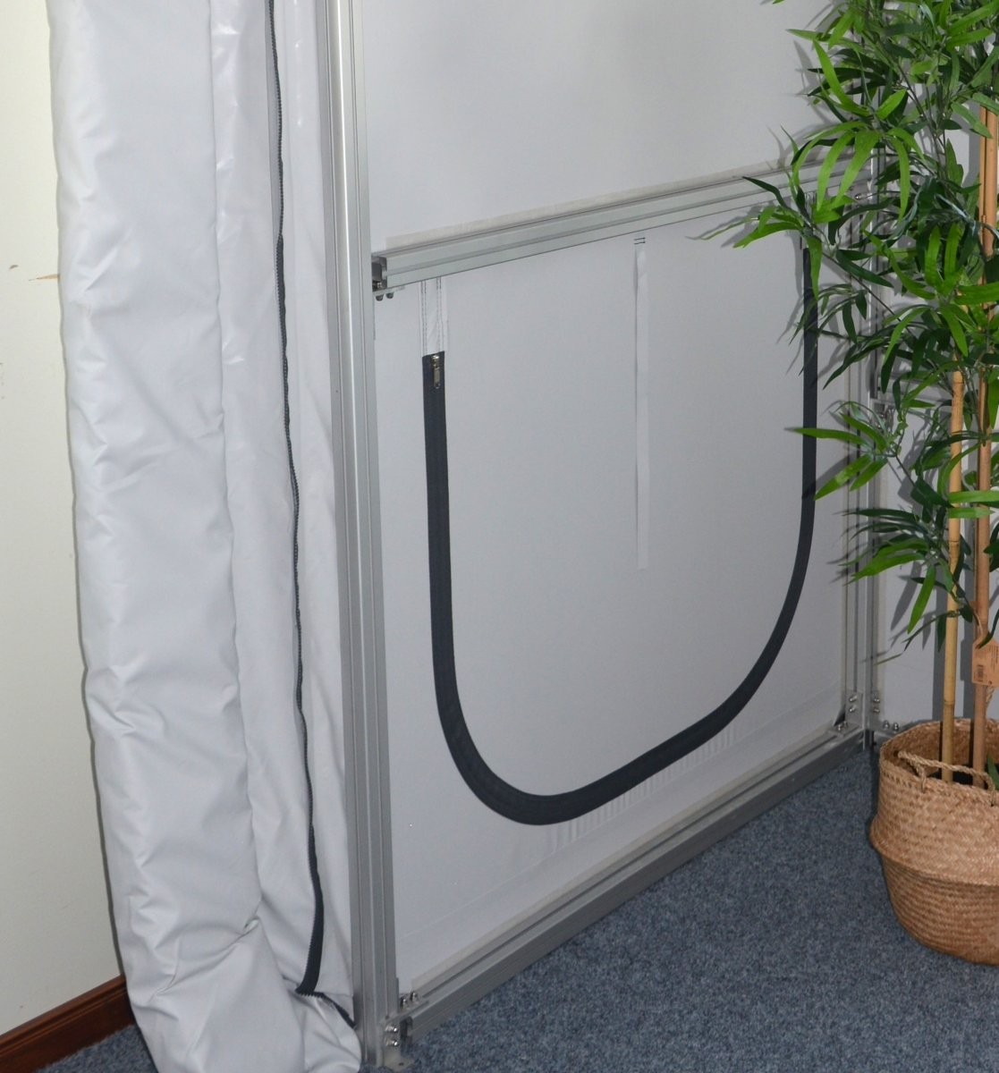 Embla har ett robust stativ i 40 × 40 mm aluminiumprofiler som sitter tätt ihop och ger en tyst, stadig konstruktion – även i hård vind. Front och gavlar fästs med kederlister, vilket förstärker stabiliteten och minimerar rörelser vid blåst. Resultatet är ett tält som står stadigt året om, oavsett väder.