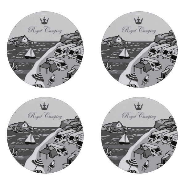 Eleganta glasunderlägg med campingmotiv – 4-pack