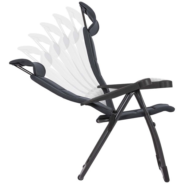 Upplev maximal komfort med denna lätta och extra stabila fällstol från Crespo, designad för både avslappning och ergonomiskt stöd. Stolen har ett 7-positions justerbart ryggstöd som låter dig hitta den perfekta lutningen, och det vadderade 3D-tyget ger en behaglig och ventilerande sittupplevelse. Tack vare sin öppna cellstruktur absorberar tyget inte fukt, vilket gör att stolen torkar mycket snabbare än traditionellt stoppade stolar.