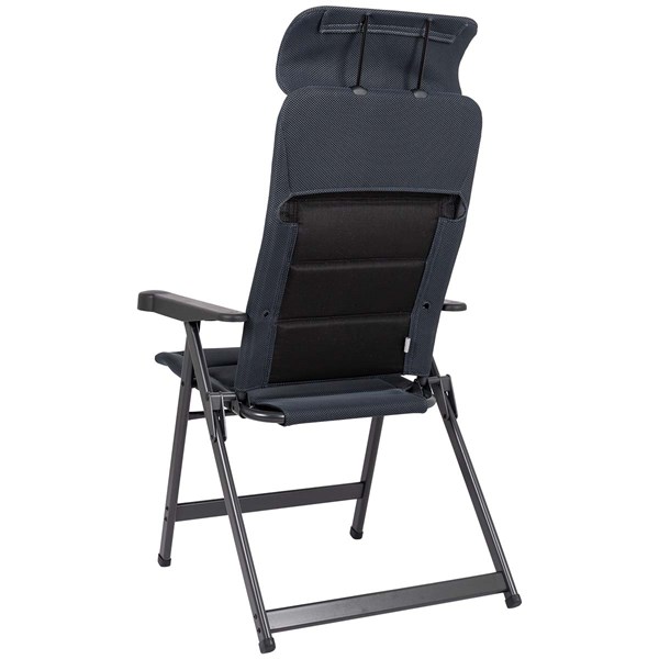 Denna exklusiva campingstol kombinerar förstklassig komfort med smart och kompakt design. Med sitt extra höga ryggstöd och ett steglöst justerbart nackstöd får långa personer ett naturligt stöd som gör stor skillnad för både hållning och avslappning.