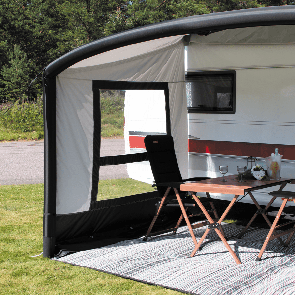 - OBS! Gavlar är tillbehör som går att köpa till och ingår inte som standard vid köp av denna luftmarkisen.