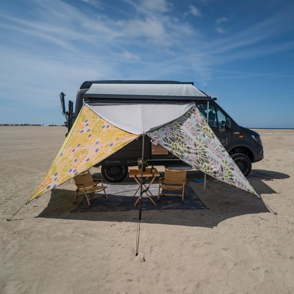 Markisen är utrustad med högkvalitativa SBS-dragkedjor på tre sidor, vilket möjliggör flexibel anslutning och justering. Oavsett om det används som lounge i trädgården, på camping eller vid husvagn – erbjuder "TC-Zip Canvas" många kombinationsmöjligheter, exempelvis tillsammans med BENTs "Zip-Carpet". Den likbenta trekantskonstruktionen och de förstärkta hörnen säkerställer stabil uppspänning och enkel montering.