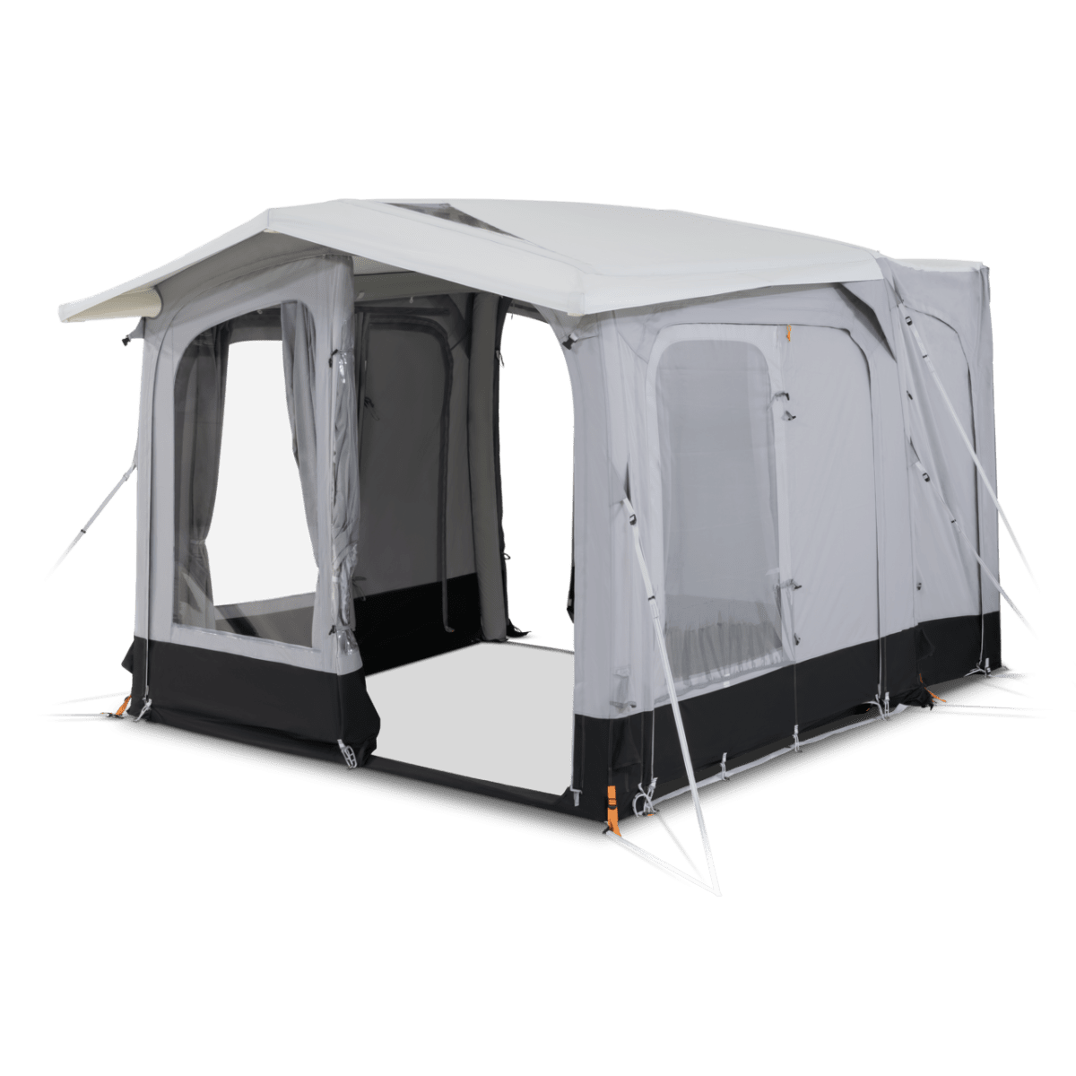 Den uppdelade förtältstunneln gör att boutrymmet hålls separat från fordonet – perfekt för längre vistelser eller om du vill koppla loss bilen. Tack vare vertikala väggar får du en generös och mer användbar inomhusyta, samtidigt som du maximerar golvytan på din campingplats.