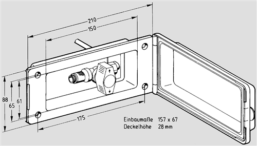 Gasoluttag med snabbkoppling för utvändig gasolanslutning. Låsförsedd lucka. Lämplig för gasolgrill. 216 x 94 mm. Inbyggnadsmått: 160 x 70 mm.