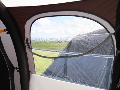 Tältet är tillverkat av slitstark 150D polyester, ett material som är noggrant testat för att klara växlande väderförhållanden. Alla sömmar är tejpade, vilket ger extra skydd mot regn och fukt. Den genomtänkta ventilationsdesignen håller klimatet behagligt inuti, med luftöppningar i ytterdörren (myggnätslucka), ovanför fönstret i vardagsrummet, i dörren till sovkupén samt en bakre ventilationskanal bakom sovutrymmet.