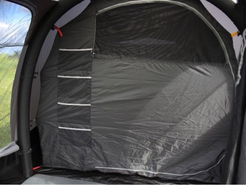 Den rymliga sovkupén för upp till 3 personer är utrustad med en solid botten som även fortsätter ut i vardagsrummet, vilket håller utrustning och bagage torra och skyddade. Vardagsrummet erbjuder extra yta för packning, ombyte eller avkoppling vid dåligt väder.