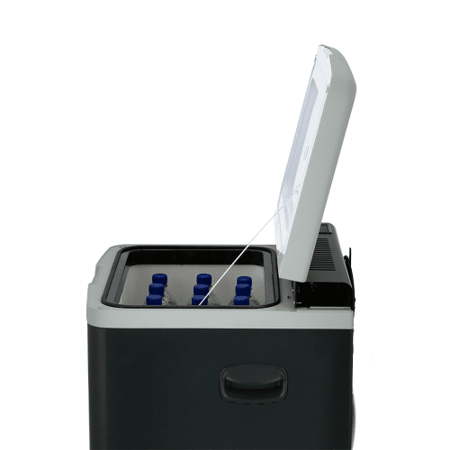Hybridkonstruktionen gör kylboxen effektiv och tyst, samtidigt som den är användarvänlig och lätt att flytta med sina praktiska infällda handtag.