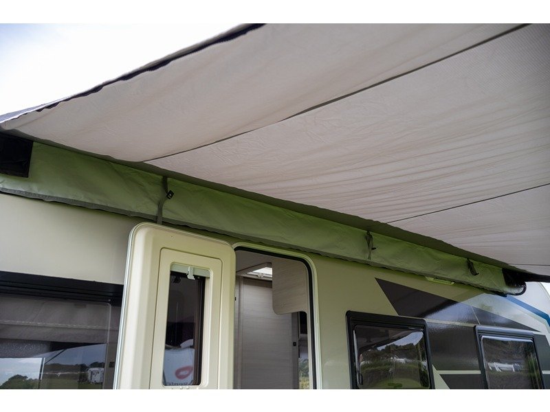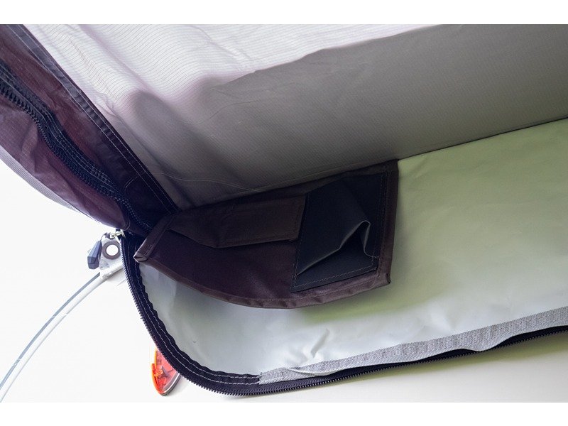 Soltaket är tillverkat i ett robust, UV-beständigt och ventilerande material som kombinerar låg vikt med hög hållbarhet. Resultatet är ett behagligt klimat under taket och en betydligt smidigare hantering jämfört med traditionella, tyngre soltak.