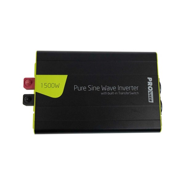 Pro-User PSI1500TX är en pålitlig och högpresterande omvandlare som omvandlar 12 VDC från fordonets batteri till stabil 230V växelspänning med ren sinusvåg. Detta ger samma strömkvalitet som i vanliga vägguttag och gör den perfekt för att driva känslig elektronik, såsom laptops, mobiltelefoner, laddare, TV-apparater, instrument eller andra enheter som kräver störningsfri drift.