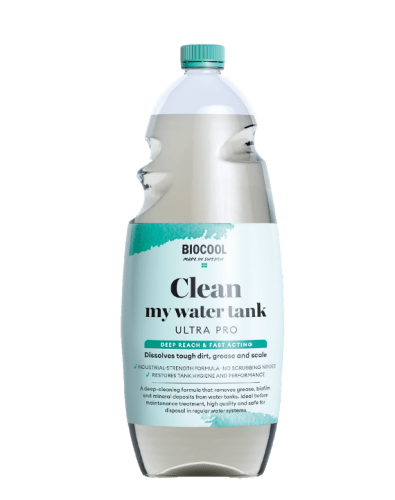 Biocool Clean My Water Tank Ultra Pro är en extra kraftfull rengöringslösning för vattentankar när vanlig rengöring inte räcker till. Produkten är framtagen för att effektivt avlägsna fett, biofilm, kalk och andra svåra beläggningar som kan försämra vattenkvaliteten och orsaka dålig lukt.