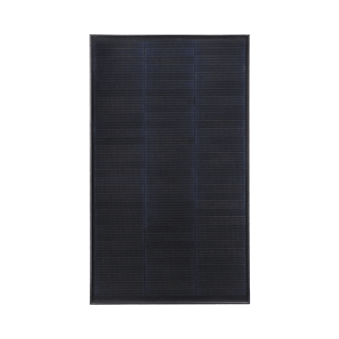 Panelen är tillverkad av monokristallina solceller, som ger både hög prestanda och en stilren, jämnt mörk yta. Konstruktionen är robust och anpassad för krävande utomhusmiljöer, vilket gör den idealisk för husbilar, husvagnar, båtar och andra mobila installationer.